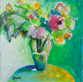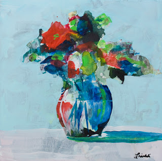 I have been having a blast painting these loose Abstract Floral vases. Just trying the various combinations from the color wheel and going for it.